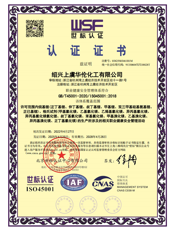 绍兴上虞华伦化工有限公司创建于2001年2月,总占地面积33000多平方米,现有员工86人,拥有各类专业证书的技术人员36人。公司以市场为导向,经过多年的研发开拓,现已发展成为以烷基金属和格氏试剂产品为主的专业厂家,公司可根据客户的需求提供定制产品。公司始终致力于研发创新,打造高端产品平台。2022年公司被国家工信部评为企业省级专精特新中小企业、国家级专精特新“小巨人”。